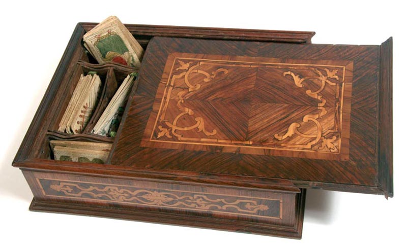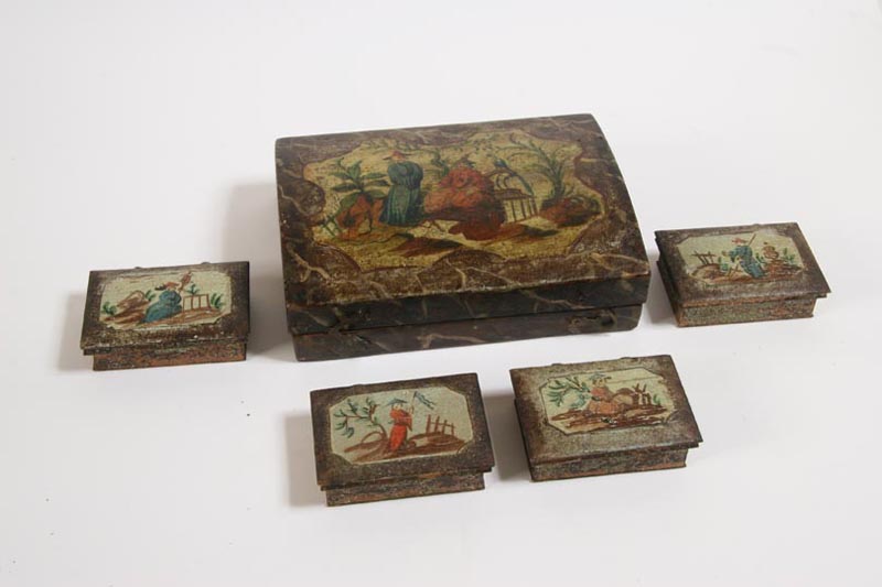 Cofanetto e scatole interne portafiches decorati a cineserie.