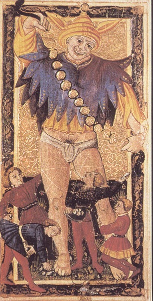 Translator’s note. In current English, a ‘fool’, in the primary sense, is someone who exercises poor judgment; a ‘crazy person’ is someone who is of unsound mind, mentally ill; and a ‘madman’ is someone who acts in a crazy manner. Also, ‘crazy’ has a secondary sense of agitation or anger, and ‘mad’ one of frenzy, unlike ‘fool’, The word ‘stupid’ is different still, meaning primarily ‘. There is much overlap in meaning as well, in secondary meanings (A). But in modern Italian, the words ‘folle’, ‘pazzo’ and ‘matto’, are all roughly synonymous (B). Whether the same was true in Renaissance Italian I do not know. Another essay of Vitali’s, The meaning of the word 'Tarocco', suggests that at least in the 18th century, distinctions did exist (see the entries for ‘matto’, ‘folle’, and ‘pazzo’ in the lengthy quote about word-meanings near the end of the essay). No doubt there was much overlap in meaning. But so as not to lose in translation what might have been distinct, ‘Matto’ and similar will be translated here as ‘Madman’, etc, and ‘Folle’ and similar as ‘Fool’, etc. (bearing in mind that they are synonymous in modern usage); other words will be indicated in brackets after my best guess as to their English translation in that particular context. In the case of Bible quotes, the King James Version uses ‘fool’ where the Italian has ‘stolto’ and the Latin Vulgate ‘stultus’ or ‘insipiens’. Here the Vulgate’s word is put after the translation to make clear what Latin wordit uses).