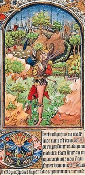 In the Sacred Scripture, he who does not believe is considered foolish, and often figures of fools appear in the Bibles of the 15th and 16th centuries, illustrating the Vulgate’s Latin translation of Psalm 52 [Psalm 53 in Protestant Bibles]: “Dixit insipiens in corde suo: non est deus” (The fool [insipiens] hath said in his heart: there is no God) (2).