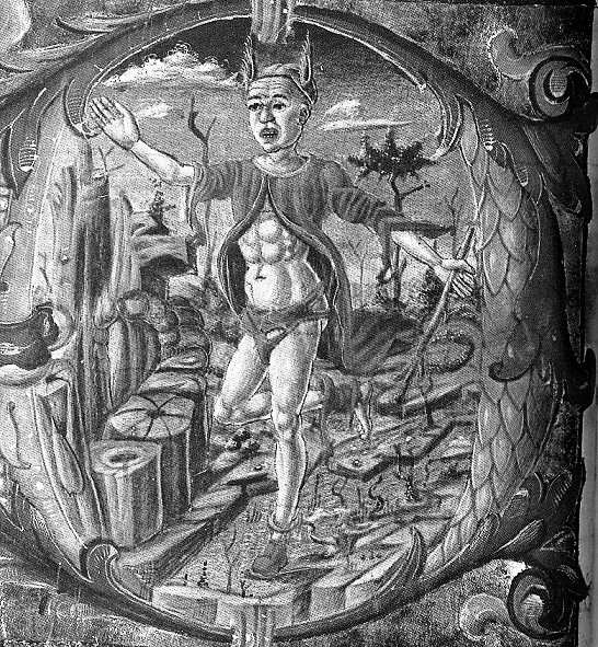 We must first of all consider that in ancient times wings, feathers and plumage were used as symbols of speed. Cartari in his work Imagini delli Dei de gl'Antichi [Images of the gods of the ancients] indicates feathers as an attribute of the Sun, to signify the speed of its path.Regarding the plumage on the head of Mercury, the author says this “Furono poi date le penne à Mercurio […] perche nel parlare, di ché egli era il Dio,…., le parole se ne volano per l'aria non altrimenti, & che se havessero l'ali. Onde Omero chiama sempre le parole veloci alate e che hanno penne” (Feathers were given to Mercury, because, when speaking - as he was a god - his words flew through the air as if they had wings. This is why Homer always spoke of words as fast, winged, and feathered) (17). Moreover, Mercury was the god of eloquence and eloquent words fly further and faster than ones that are not, while the Sun was an image of God himself, and so of absolute goodness as well as of intellect without limits.
